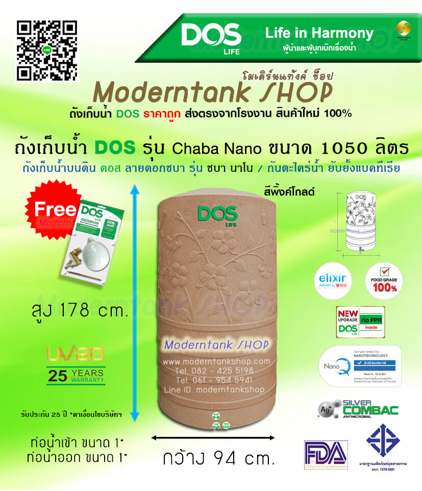 ถังเก็บน้ำ DOS รุ่น Chaba Nano (ชบา นาโน) ขนาด 1050 ลิตร