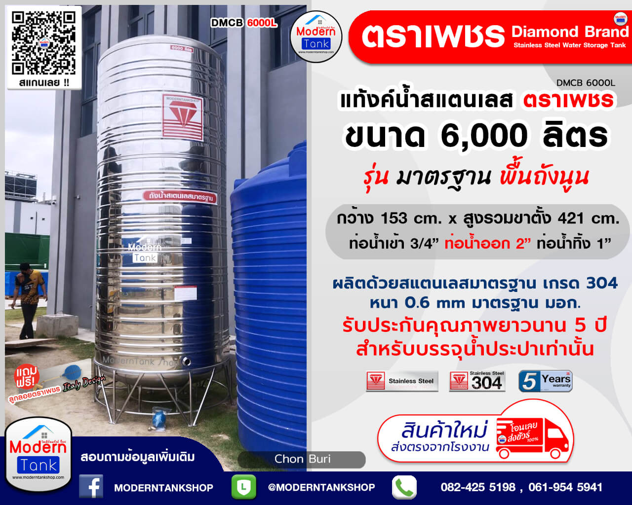 แท้งค์น้ำสแตนเลส ตราเพชร ขนาด 6000 ลิตร ราคา พิเศษ 40,500 บาท จากปกติ 78,000 บาท รับประกันคุณภาพยาวนาน 5 ปี มาตรฐานใหม่ มอก. 989-2562 ผลิตด้วยสแตนเลสเกรด AISI304 คุณภาพสูง (18-8) ได้รับการรับรองมาตรฐานอุตสาหกรรม (มอก. 989-2562) ความหนาของเนื้้อสแตนเลส 0.6 มม. แข็งแรง ทนทาน สะอาด ปลอดภัยต่อการใช้บรรจุน้ำ ขาตั้งผลิตจากสแตนเลสคุณภาพสูง มีหลายขนาดให้เลือกตามความต้องการ แถมฟรี ลูกลอย PVC ตราเพชร ขนาด 3/4" จัดส่งฟรี ในเขต กรุงเทพฯ นนทบุรี ปทุมธานี สมุทรปราการ พิเศษ !!! สำหรับงานโครงการ สามารถสอบถามส่วนลดเพิ่มเติมได้ครับ พิเศษ !!! บริการยกขึ้นอาคาร (มีค่าใช้จ่ายเพิ่มเติม กรุณาแจ้งล่วงหน้า) ***หากไม่แจ้งล่วงหน้า ทางโรงงานจะขอสงวนสิทธิ์ในการงดให้บริการ นะครับ** ***(เนื่องจากทางโรงงานจะต้องเตรียมอุปการณในการให้บริการครับ)*** ****กรณีขยาย เพิ่ม เปลี่ยน รูน้ำใช้ รูน้ำเข้า ทางโรงงานจะมีค่าใช้จ่ายเพิ่มเติม ตาม ขนาด และ จำนวนที่สั่งทำพิเศษนะครับ**** กรุณาโทร ตรวจสอบสต็อคล่วงหน้า ก่อนใช้งาน 1 - 2 วันครับ *** สนใจสินค้า สอบถามข้อมูลเพิ่มเติมได้ที่ ***