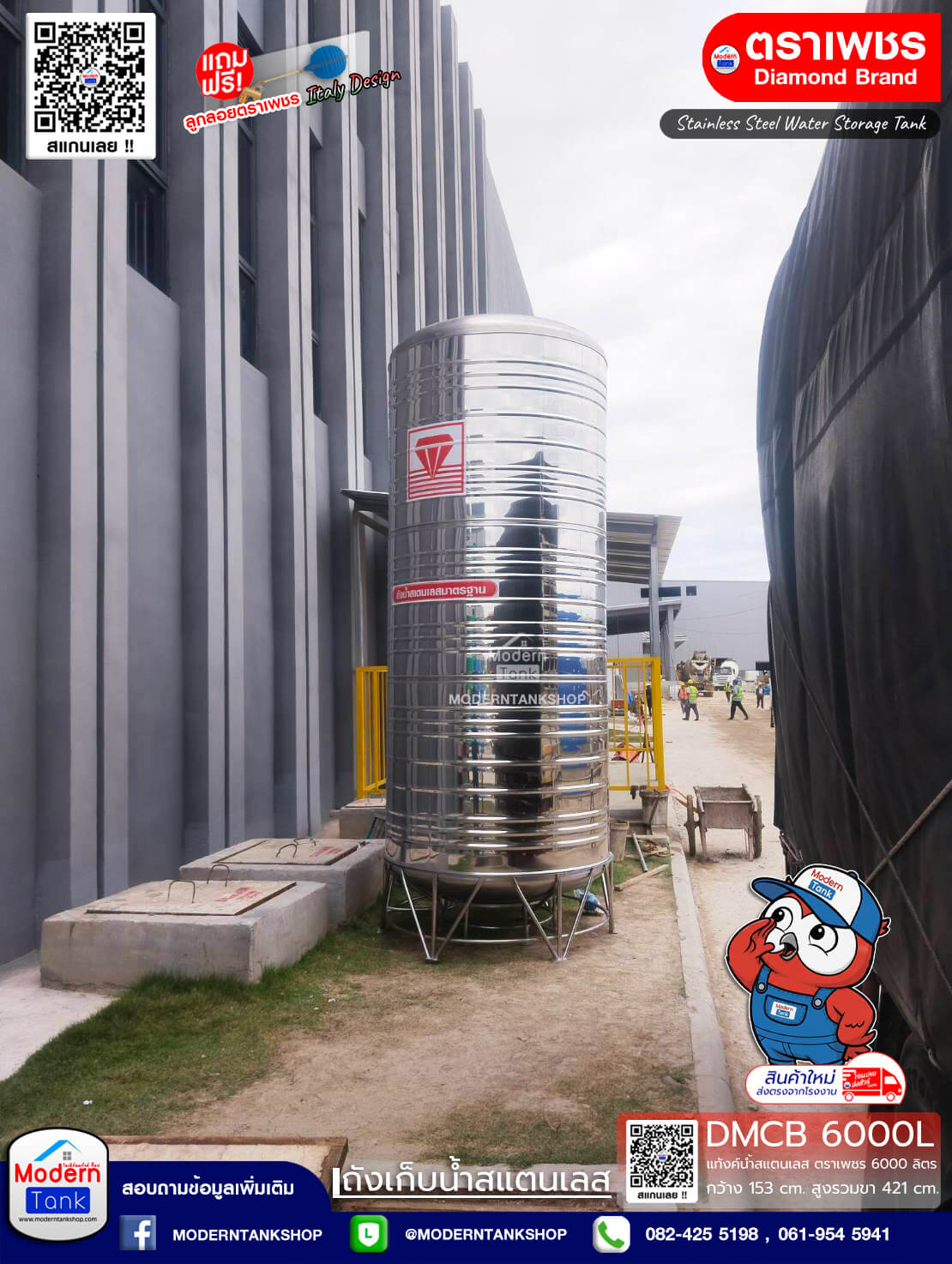 แท้งค์น้ำสแตนเลส ตราเพชร ขนาด 6000 ลิตร