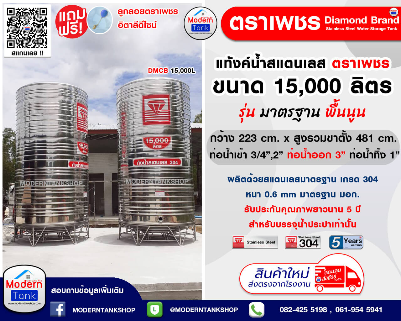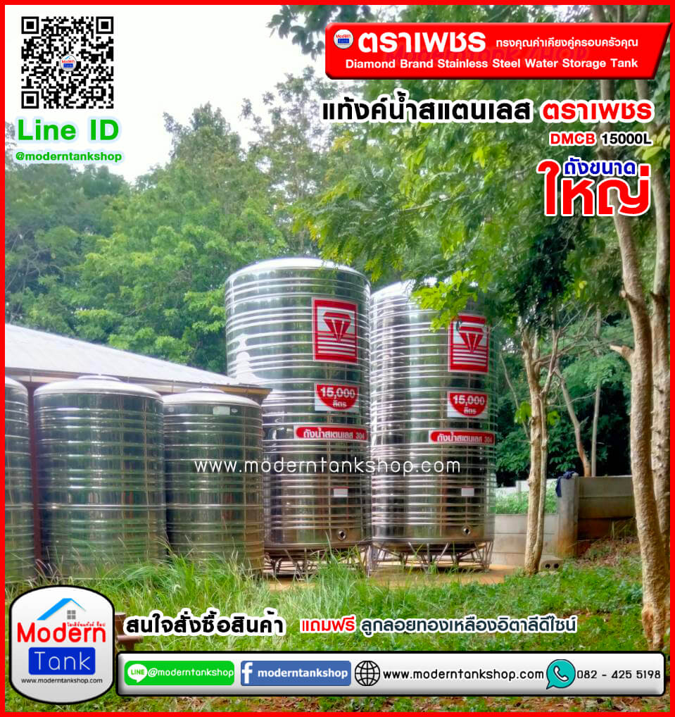 แท้งค์น้ำ สแตนเลส ตราเพชร ขนาด 15000 ลิตร