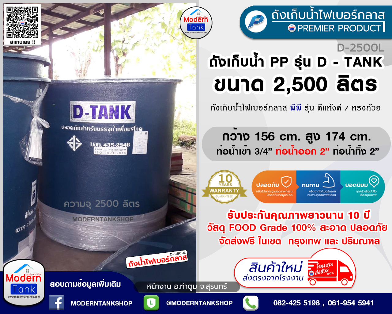 ถังเก็บน้ำไฟเบอร์กลาส PP. รุ่น D-TANK ขนาด 2500 ลิตร