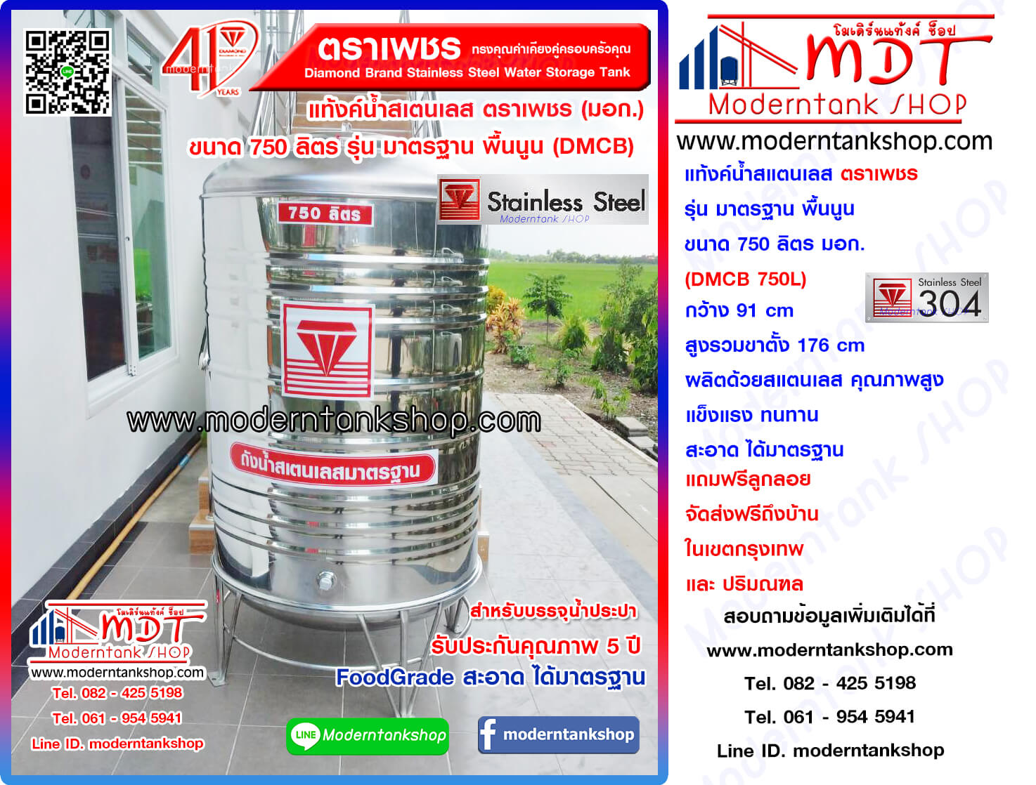 แท้งค์น้ำสแตนเลส ตราเพชร รุ่นมาตรฐาน (รุ่นพื้นนูน ทรงอ้วน) รหัส DMCB